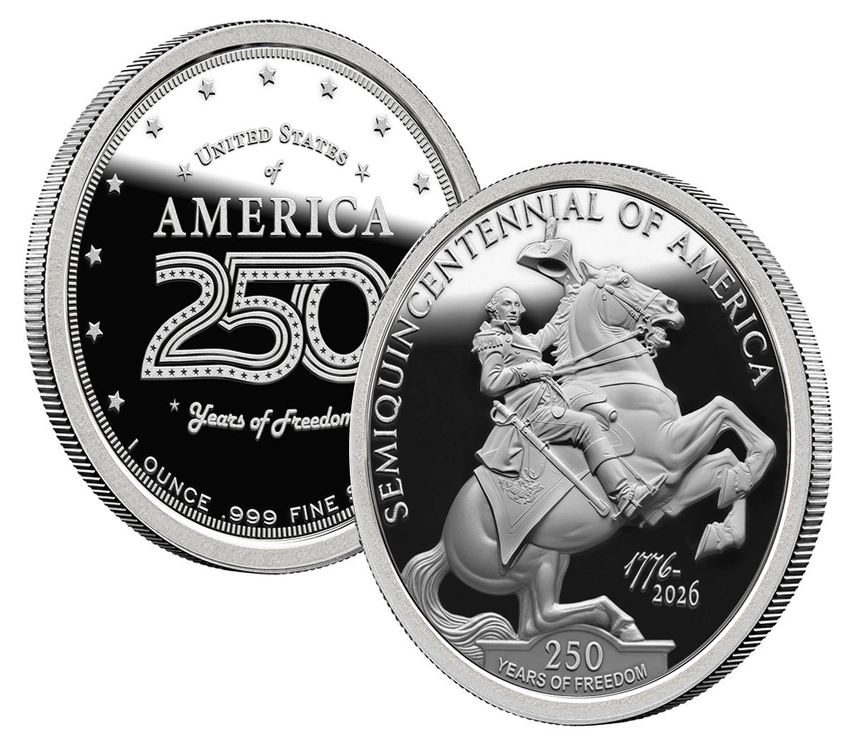For 250 years, the United States has been defined by a continuing journey toward freedom, self-government, and opportunity. From the declaration of independence in 1776 to the present day, the American story has been shaped by generations who have worked to preserve and expand the ideals of liberty and democracy. This commemorative silver round captures that enduring legacy, marking the nation’s Semiquincentennial with a tribute to the spirit that has guided the country for two and a half centuries.